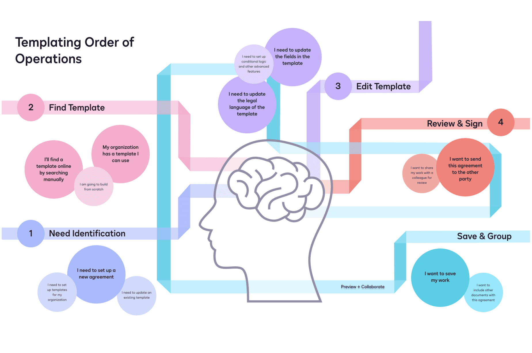Our research team conducted interviews with 18 participants across different industries in order to validate and refine our understanding of users’ mental model surrounding agreement templates.