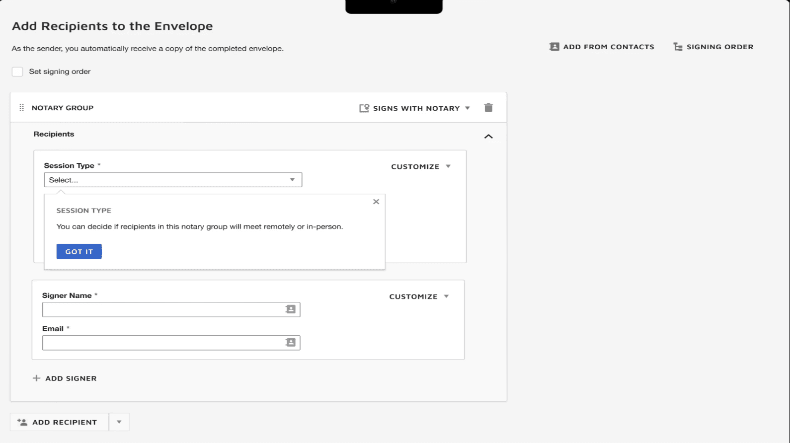 Before the session can begin, notary legally must confirm the signer is physically present. If they are not, they cannot proceed with the document and must exit the session.